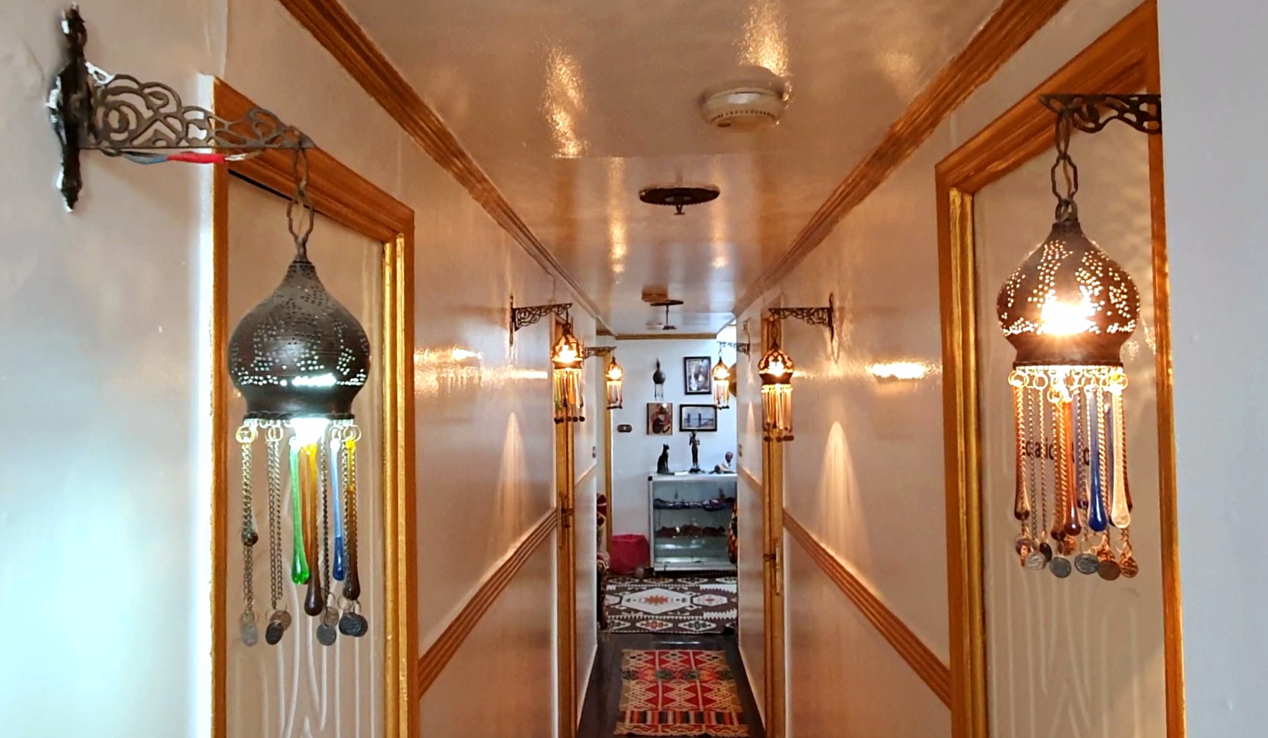 Lady Bastet’s half-shaded sun deck is the heart of the Sandal, with chairs, a divan, sun beds and dining tables. This is the perfect place to enjoy daily life on the riverbanks and watch the landscape of beautiful Egypt.