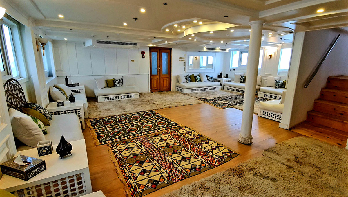 On the spacious sundeck, you will find an open-air oriental-style Jacuzzi with sunbeds to enjoy the sun and an outdoor buffet dining area with views of the Nile at sunset and sunrise that takes your breath away.