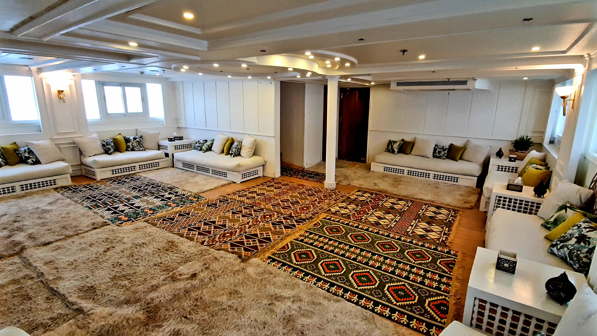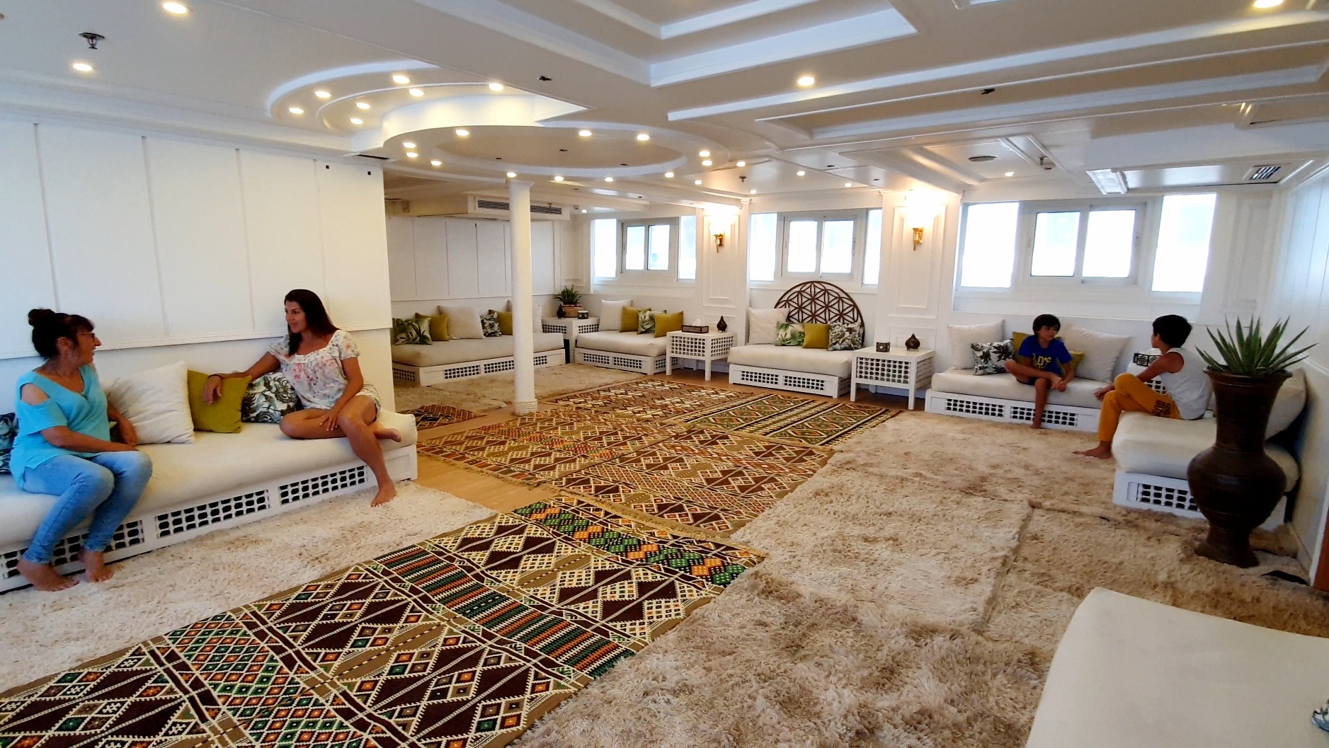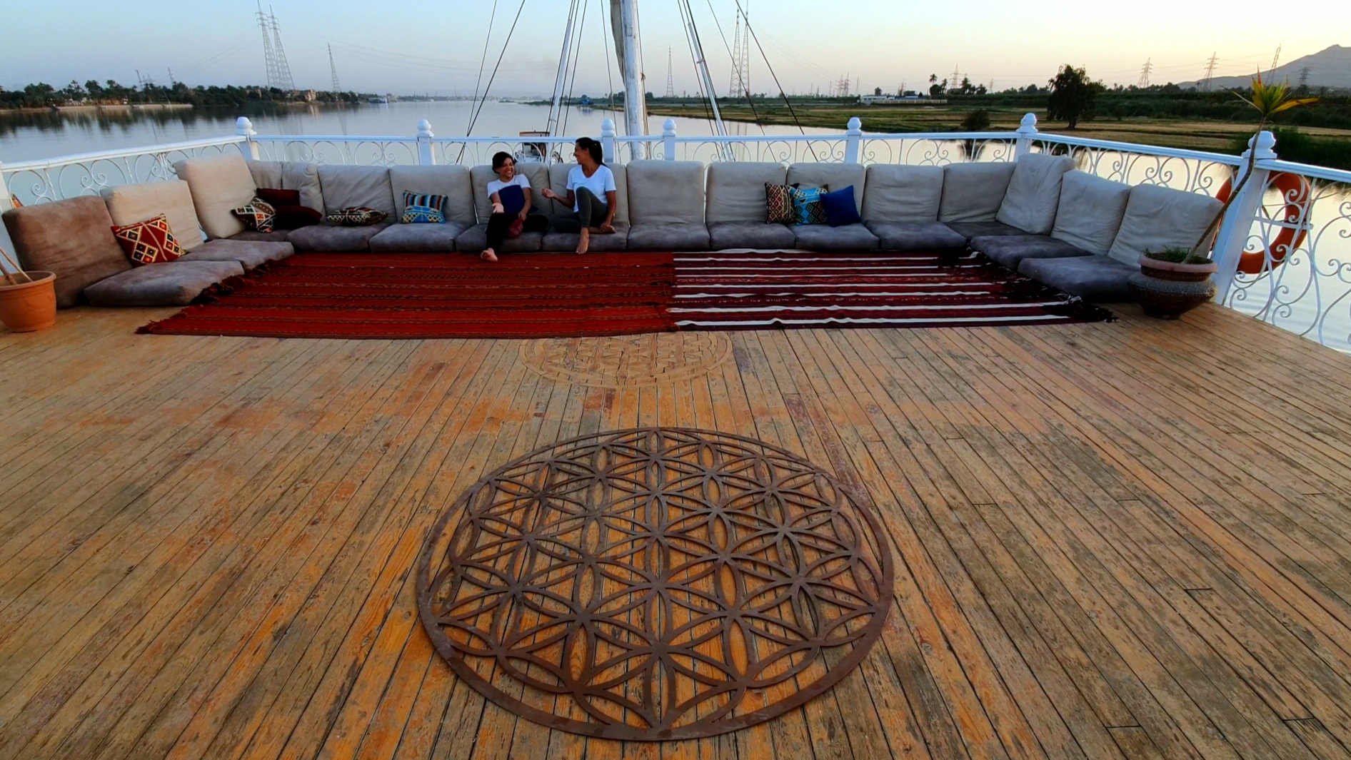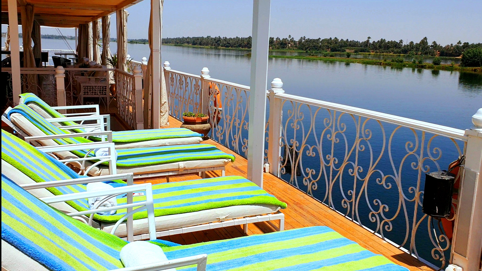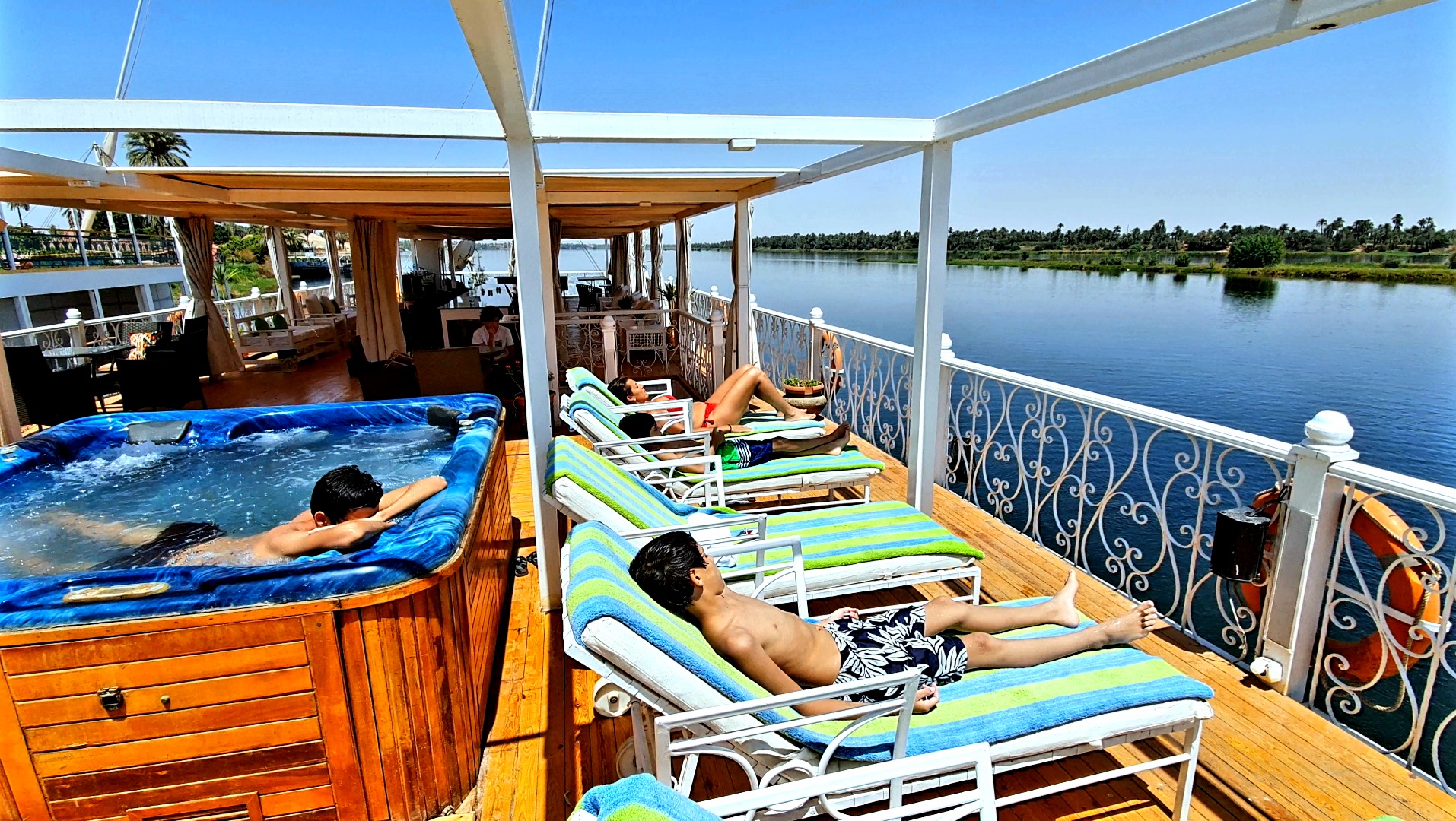 On the spacious sundeck, you will find an open-air oriental-style Jacuzzi with sunbeds to enjoy the sun and an outdoor buffet dining area with views of the Nile at sunset and sunrise that takes your breath away.