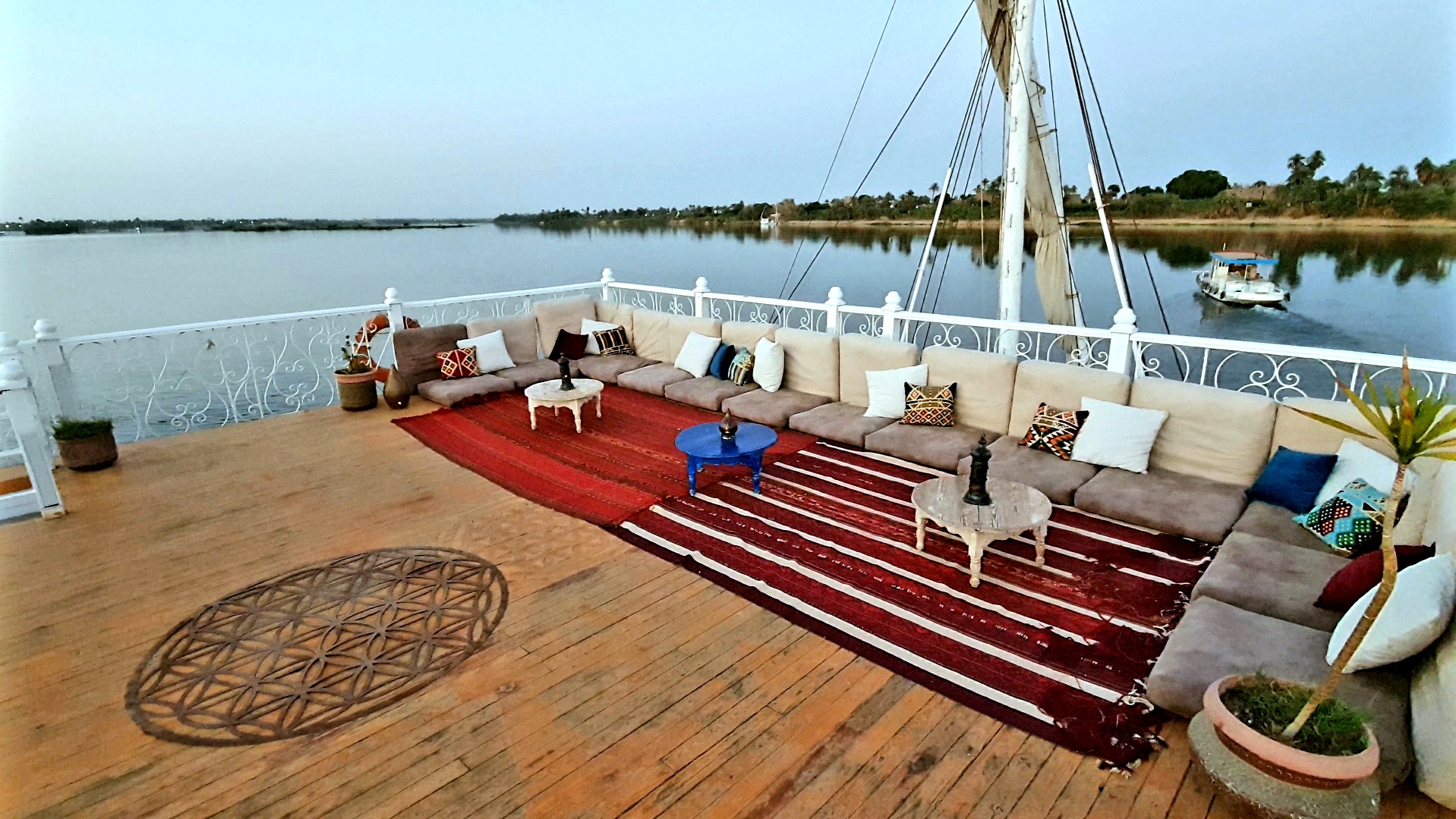 Sekhmet was launched here in Luxor in 2019 originally from Cairo, she offers a larger style dahabiya cruise for small groups, extended family and friends sailing on the Nile to discover Egypt on a private cruise.